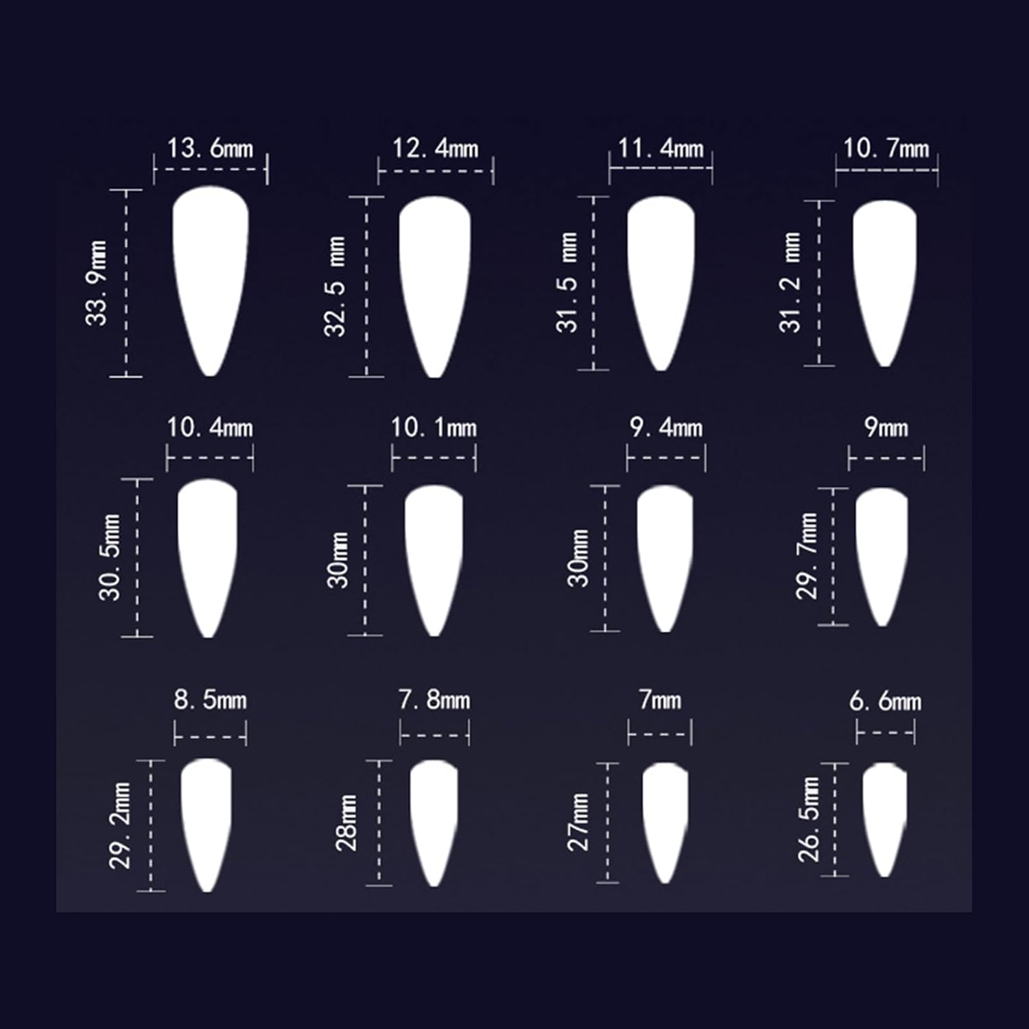 - 24 press-on nails (12 sizes for perfect fit)