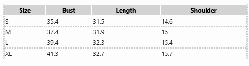 | Size | Bust | Length | Shoulder |